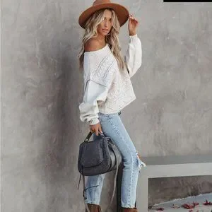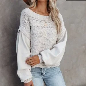 VICI Womens NWOT Chandy Cotton Blend Cable Knit Sweater MEDIUM Relaxed F…