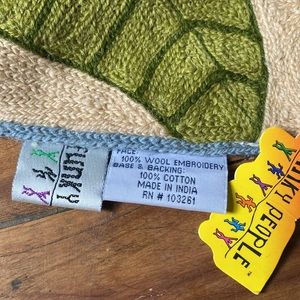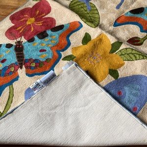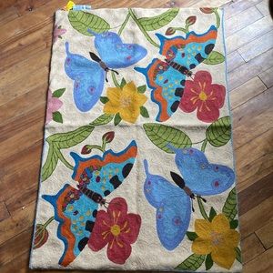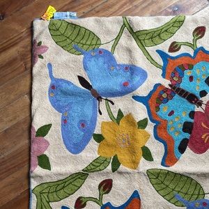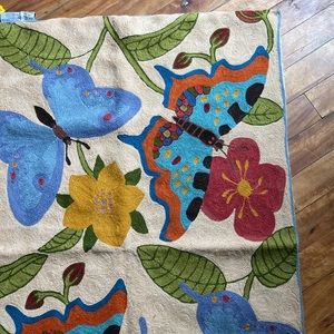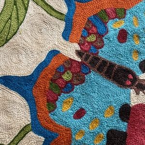 Wool embroidered butterfly area rug with cotton canvas backing.