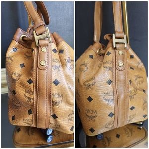 This authentic MCM Cognac Visetos Coated Canvas Heritage Drawstring Bag is in it’s good pre-owned condition. The exterior canvas is clean and beautiful, shows light rubbing at the base edges. Interior is clean. Handle shows little scratches. Gold hardware. Can be worn as a shoulder/crossbody bag.