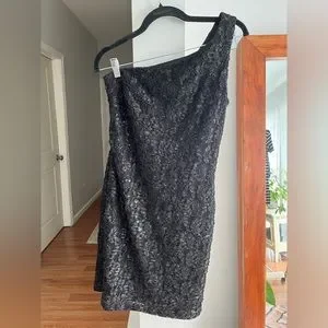NIGHT WAY COLLECTIONS Black Lace Embroidered One Shoulder Mini Dress
