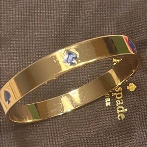 KATE SPADE ♠️ NEW YORK Gold tone bracelet embellished with blue enamel aces. Very pretty bracelet. Dust bag and Kate Spade box included. *Please look at pictures that show some signs of subtle wear (slight scratches). Should you have any questions, please do not hesitate to ask. Thank you for visiting my closet. 💐