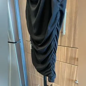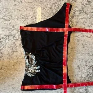 Love that this top is Made in the USA!! This one shoulder top is just stunning. Right side has a beautiful silver sequins design and the left side has rouging. Gives you a slimming and complimenting silhouette.