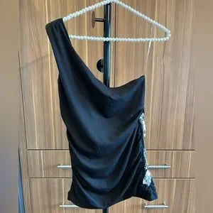 Mandee Black with Silver Side Sequins Top - Size Medium