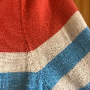 Light weight Talbots coral/white and blue striped sweater buttons on back