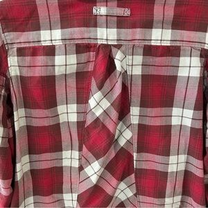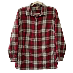 Duluth Trading Co Red Plaid Flannel Popover Long Sleeve Button Tunic Size Small