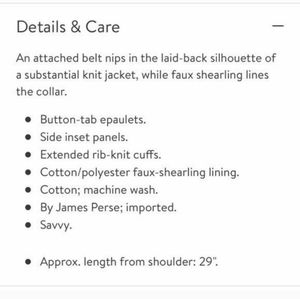 James Perse Standard Surplus Wrap Sherpa Jacket Cardigan; solid black color; size 1 (see measurements); in excellent preowned condition- no flaws