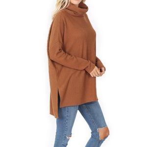 📢SALE! BOHO CHIC Brushed Thermal Waffle Cowl Neck Hi-Low Sweater Top
