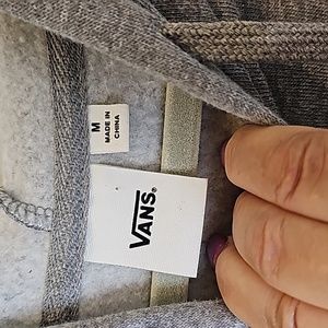 Oversized gray Vans hoodie with logo in turquoise , white, black. Kangaroo pocket and warm, cozy fleece interior. Excellent Used Condition with no flaws. Size Medium.