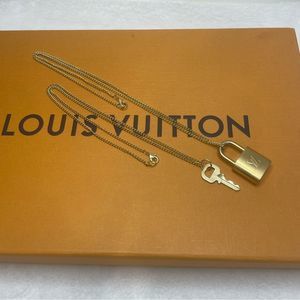 Authentic Louis Vuitton padlock and key layered necklaces