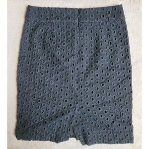 J.Crew Women's Pencil Skirt Eyelet Embroidery Navy Blue 100% Cotton Lined Size 0