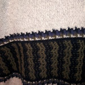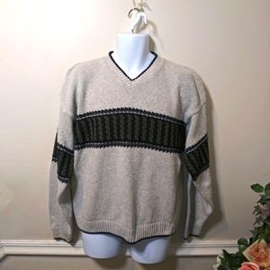 Vintage Liberty Sweaters Gray, White Marled Sweater With Olive/Navy Chest Stripe