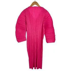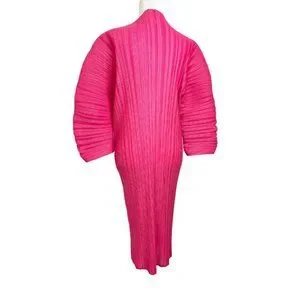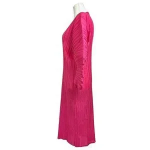Pleated throughout with vertical narrow pleats that mean the dress expands and contracts to fit the wearer.