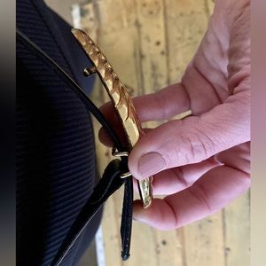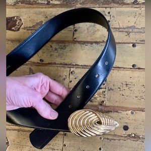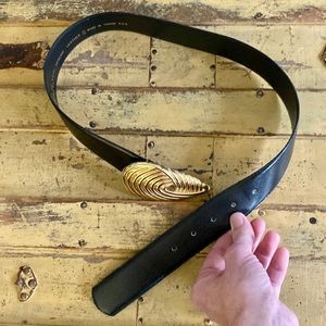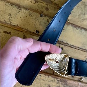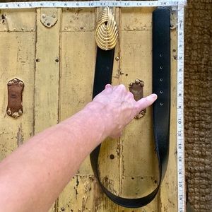 VINTAGE R&R BLACK LEATHER BELT GOLD HARDWARE BUCKLE LEATHER BELT S