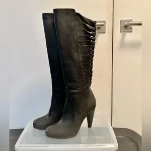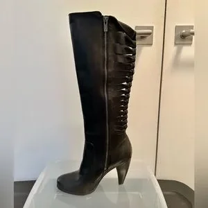 Frye Black Leather Full Zip Boot. Twisted Lattice Design
