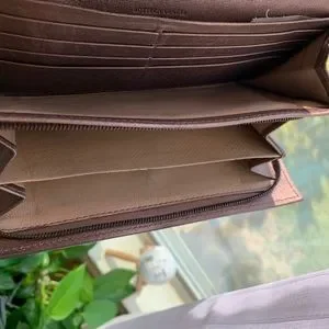 Gorgeous, classic Bottega Veneta Intrecciato long wallet in excellent condition inside and out. Only minor flaw is some coin residue in one pocket area. Glimmering, light brown color. Can make into a crossover or shoulder purse with a chain as I have done in a couple of pictures. (Chain included ) ☺️. This particular brand is legendary for its quality and craftsmanship. (Please research if you’re able). Higher end than Louis Vuitton, CD, or Hermes. This opportunity at this price is very rare. I’m thinning out some items in my closet to add more. Thank you for visiting my closet.