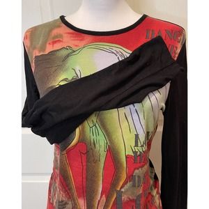 ETCETERA Womens Graphic Elephant Shirt Size Medium Unique Colorful 90s Classic