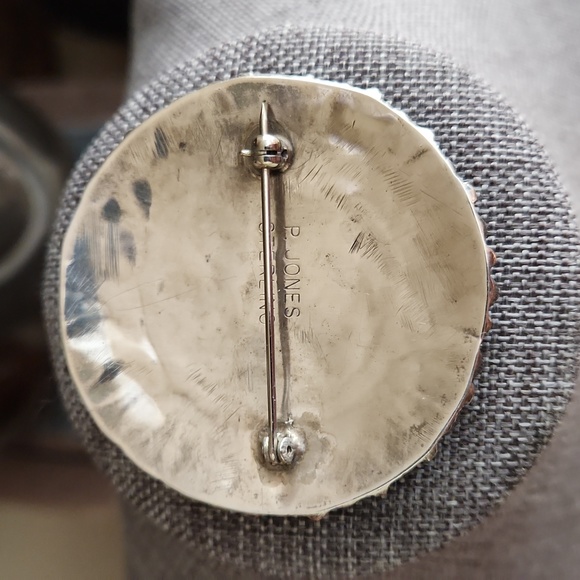 Stunning vintage handmade Native American Navajo flower cluster turquoise and sterling pin is in excellent vintage condition. Gorgeous 9 central petal design with 22 surrounding turquoise stones and sterling beads between the petals on a sterling mount. Pin mechanism is functional. Pin is signed by artist and marked sterling on back. It measures approximately 1 78" in diameter.This is a wonderful SW handmade treasure to add to your collection! From non-smoking home. ๐ผ๐