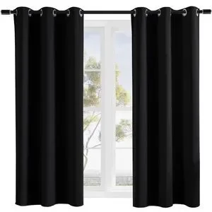 Rutterllow Darkening Blackout Curtains 2 Panel,Grommet Top(42x63 Inch, Black)