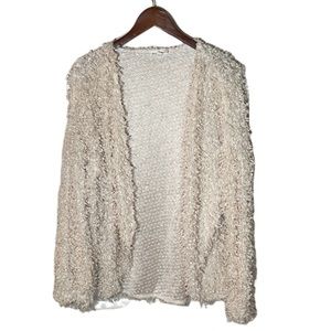 Blu Pepper - Cream Popcorn Fringe Fuzzy Open Cardigan - Size Large