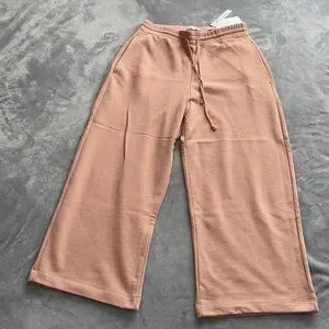 Wide Leg Cropped Sweatpant In Light Blush Sand With Elasticized Waistband And Side Seam