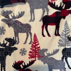 This is a beautiful double fleece Christmas blanket. Perfect for a gift or to keep it for a chilly day for the Christmas season. Print side is a beautiful white with Moose’s and Christmas Trees-the back is a Buffalo red and black plaid to give it a perfect look.