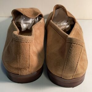 Banana Republic beige suede loafers. Size 9 ½. Decorative stitching on top. Stored in shoe bag which is included. Lined.