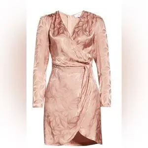 NSR Nara Faux Wrap Long Sleeve Rose Pink Dress Medium