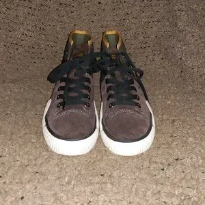 These Rackam Roofer sneakers have a mid, ankle height and lace up with waxed taped laces.