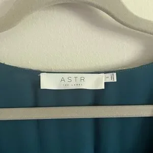 Beautiful blue, white, and pink cropped v neck blouse with sheer bell sleeves