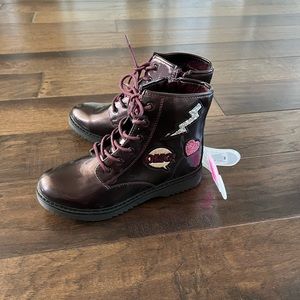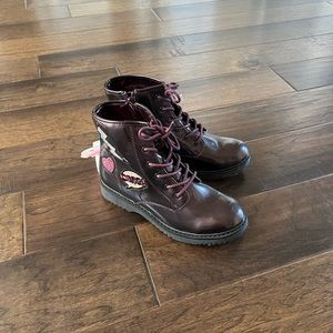 Brand new with tags! Big girl Children’s Place boots with patches, shoe laces and side zippers. They are super stylish!