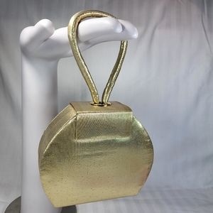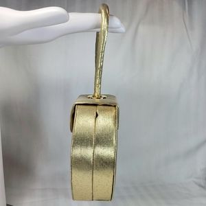 La Regale Mini PURSE Gold Satin Box Clutch Wristlet Hand Bag Crossbody Formal