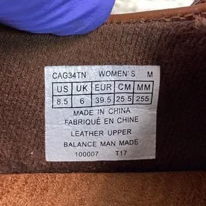 Light used wear to the soles, footbeds and uppers; some sticker residue on both insoles.