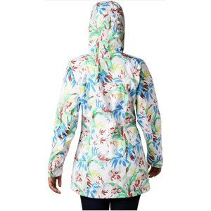 Columbia Womens White Floral Omni-Tech Splash a Little II Rain Jacket Hood Large