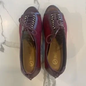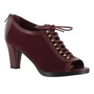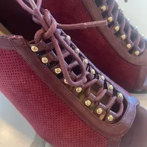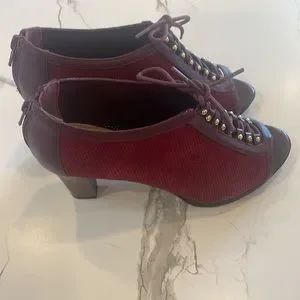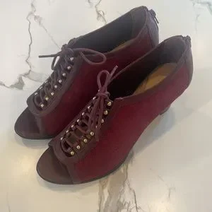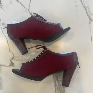 Bella Vita Burgundy Suede Peep toe,lace up,chunky heel,zipper closure,7 1/2,
