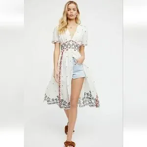 Free People Real Romance Embroidered Dress Top