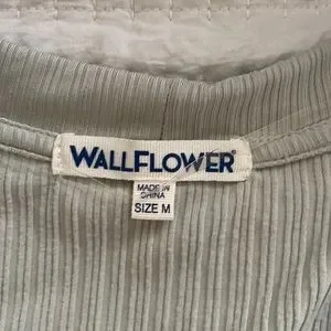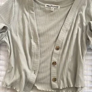Juniors Cropped Cardigan. Size Medium. Light Green. Ruffled details on wrists and waist. Tortoise shell buttons. Brand- Wallflower