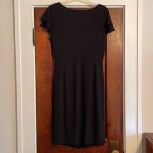 Worn once for a wedding - extremely comfortable and flattering with slight flutter sleeve - stretch that is very forgiving as well!