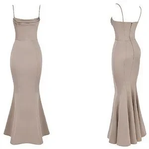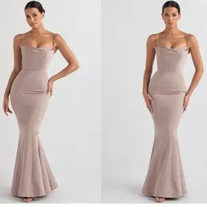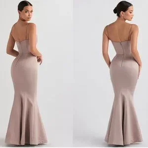HOUSE OF CB 'Violette' Mushroom Satin Fishtail Maxi Gown NWOT