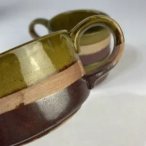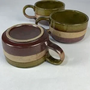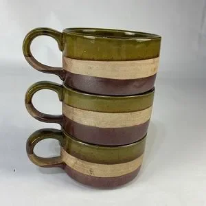 Vintage Triple Glaze Oversized Pottery Mugs (set of 3)