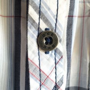 This BKE shirt is in very good pre-owned condition with no visible flaws. Very nice blue, white multi plaid pattern, see pictures.
