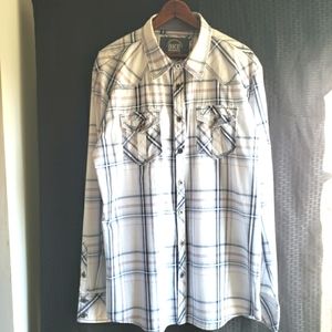 BKE Standard Fit Mens Long Sleeve Button Front Shirt XL Blue White Plaid