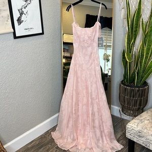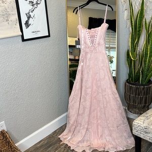 House of Cb 'Seren' Soft Pink Floral Lace Back Maxi Dress NWT