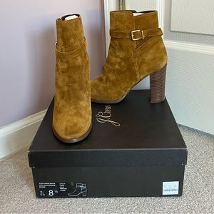 NWB J Crew Suede Ankle Boots with Wrap Around Buckle, size 8.5