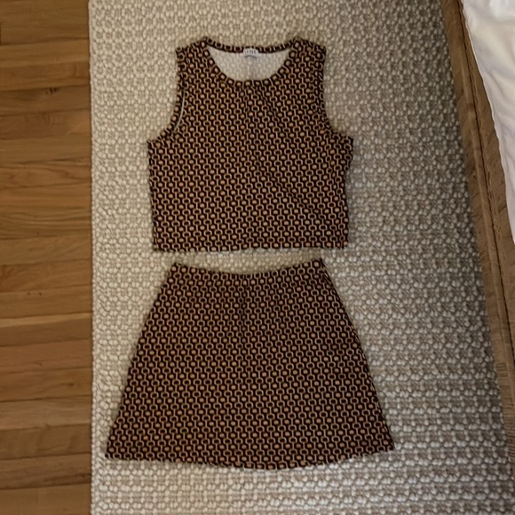 NWOT darling leset two piece skirt and tank. I ordered two sizes on final sale from Net-a-porter (bottoms are a medium and the top is a large). For reference I’m a 27-28 in bottoms and a 32D band bra. The top is designed for a boxy fit and fits me like the model.