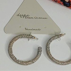 Deepa Gurnani Haidee Textured Hoop Earrings in Champagne Gold Color