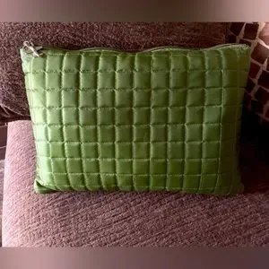 Received as a gift, never used! Compact for traveling. Soft blanket folds inside & inflatable pillow insert for pillow. 13”x10”