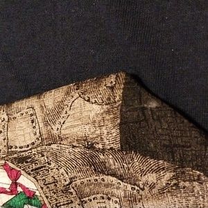 This is an amazing tie. Worn once. Gorgeous graphics. Santa checking his list and checking it twice. Made in the USA. The last photo shows that the spot on the bottom in the photo is a material fade that I was not aware of when purchased, not a stain. Our items come from a smoke and pet free home.