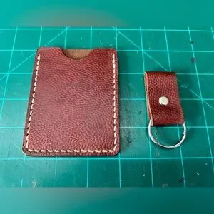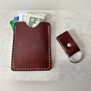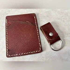 Vintage Football Leather Card Holder Front Pocket Wallet Hand Made W/key Chain