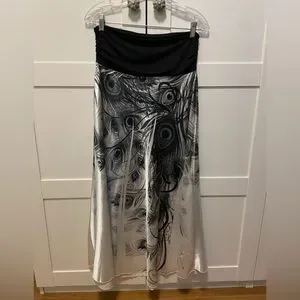 Long Peacock Black and White Print A-Line Skirt by Body Central! Satin shirt with Black Stretch Waist. Wear it on your hips or High Waisted. SIZE M