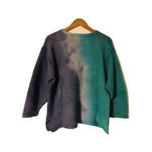 Eddie Bauer Vintage Womens Large Blue Dye Knit Sweater. The blues blend into a lighter color in the middle. In good condition minus a small hole in the armpit area. It looks like it can be fixed/sewed pretty easily but I will leave that up to you.
